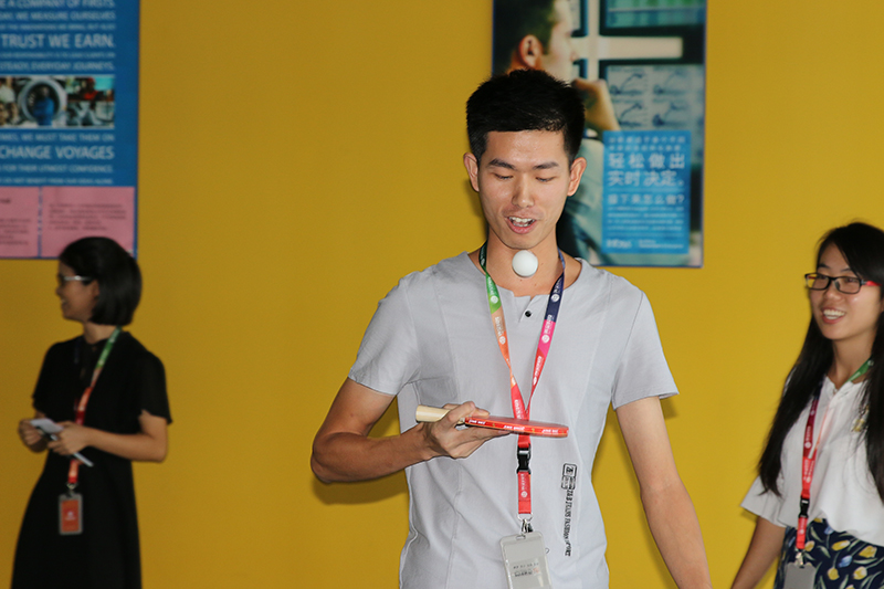 看我们环金的小伙子认真掂球的样子,似乎志在必得!